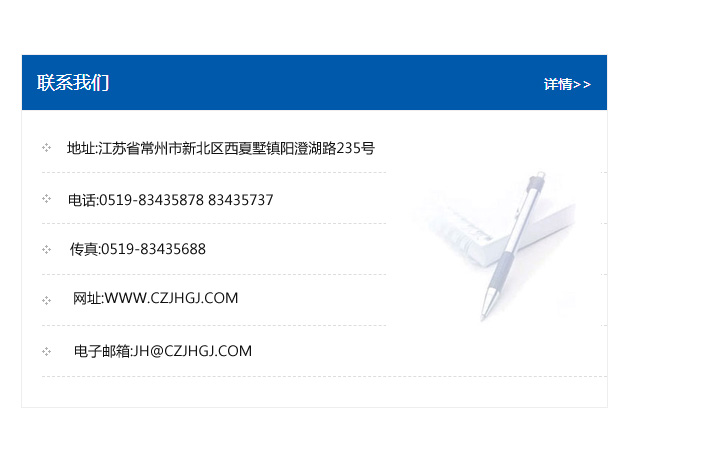 地址:常州市新北區友邦商務大廈1幢16、17層  電話:0519-85101652  傳真:0519-85112595  郵編:213022  網址:www.cz-jiayue_cn.cqrct.com  郵箱:xiajifengaa@163.com
